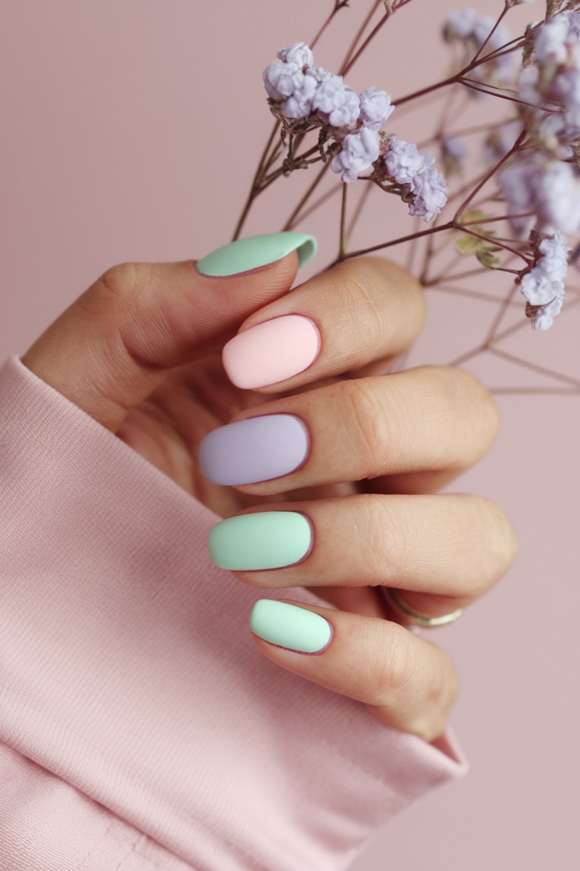 Matte nails have a laid-back charm, and paired with pastels, they look even more refined.
