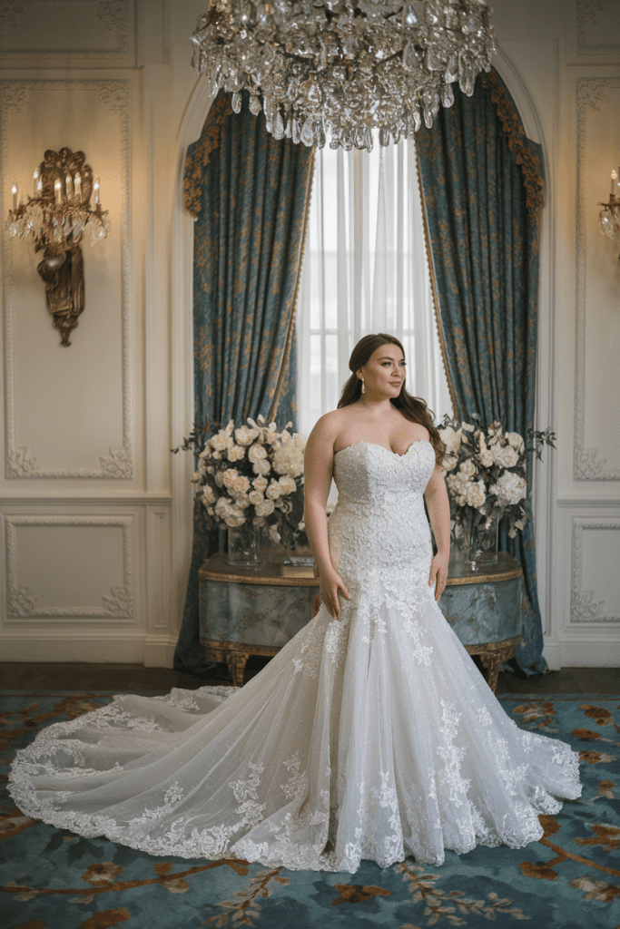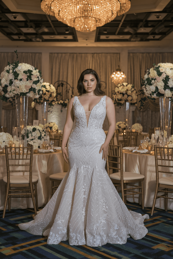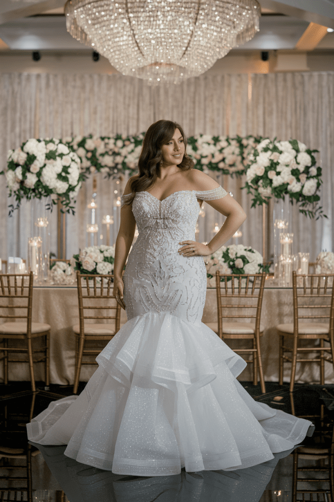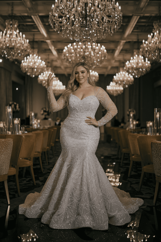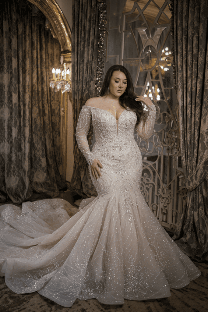 Over the years, designers have embraced inclusivity by offering mermaid gowns in extended sizes without sacrificing detail or craftsmanship. No longer limited to A-lines or empire cuts, plus size brides can now confidently step into gowns that sparkle, shimmer, and sculpt in all the right places. Whether adorned with lace, sequins, or clean minimalism, the mermaid style has become a canvas for diverse interpretations of bridal beauty.