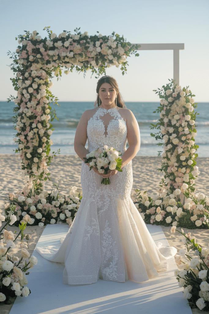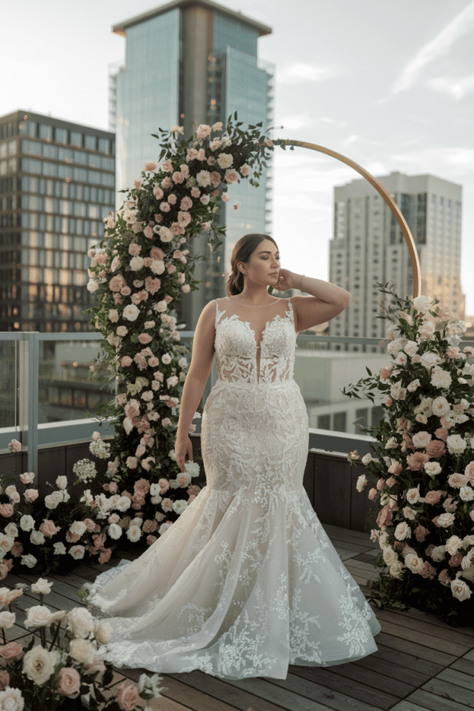 Few silhouettes capture the essence of glamour quite like the mermaid. Fitted through the bodice and hips before flaring out dramatically near the knees, the mermaid gown is a celebration of curves and confidence. For plus size brides, this style can feel especially empowering, highlighting natural shape while adding undeniable drama. It is not just a dress, but a statement of self-assurance and elegance.