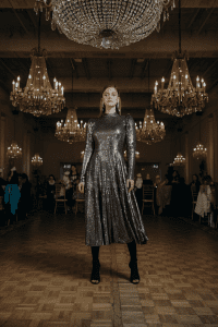The sequin blazer dress says “I came to party but make it chic.” The tailored shape balances the sparkle, so it feels elevated instead of Vegas. Go for black or deep wine sequins.