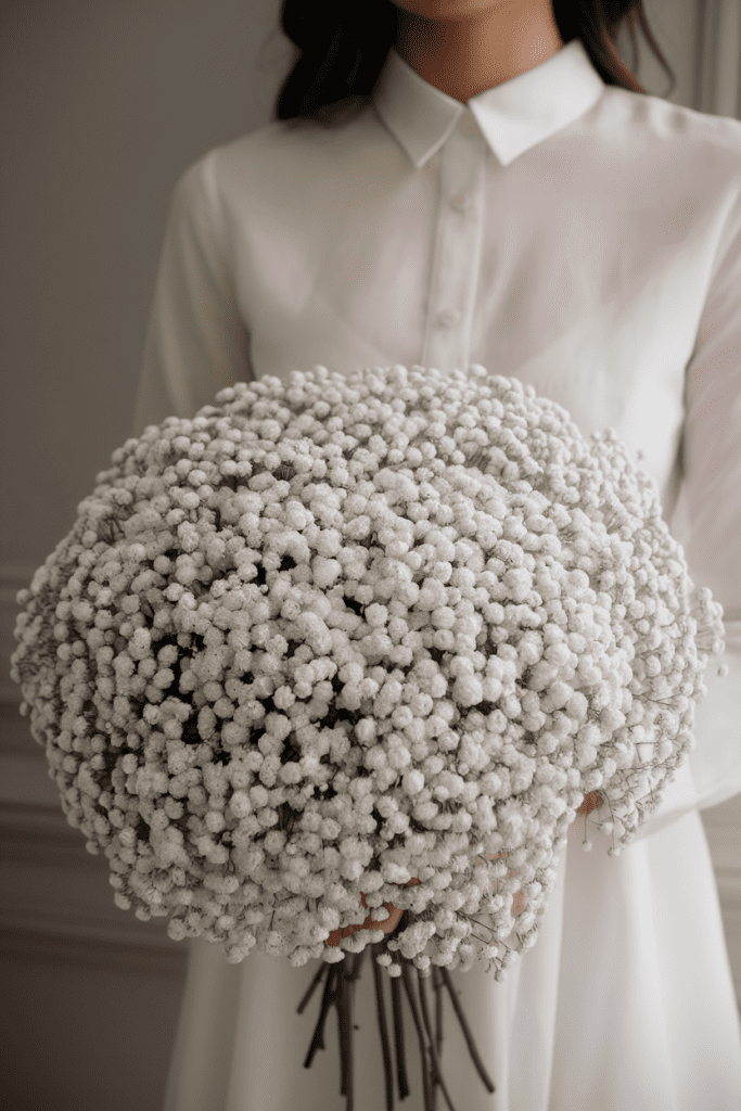 Baby’s breath, when used en masse, looks like a chic, ethereal cloud. Add silk ribbon for polish.