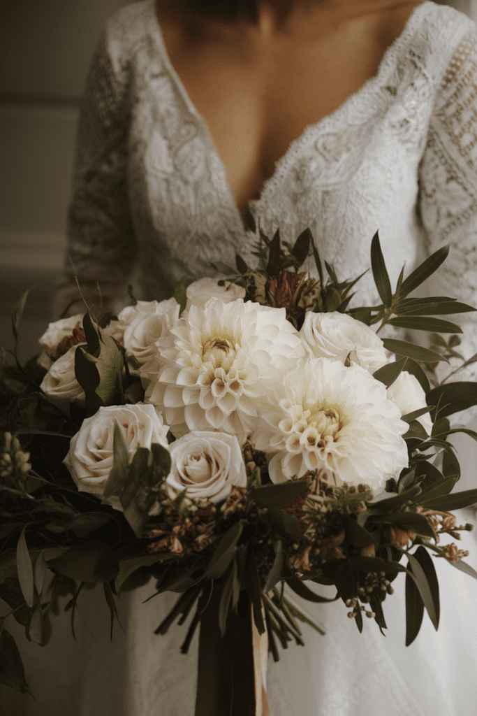 Big, bold dahlias add texture and wow-factor. Mix with smaller blooms like ranunculus for balance.