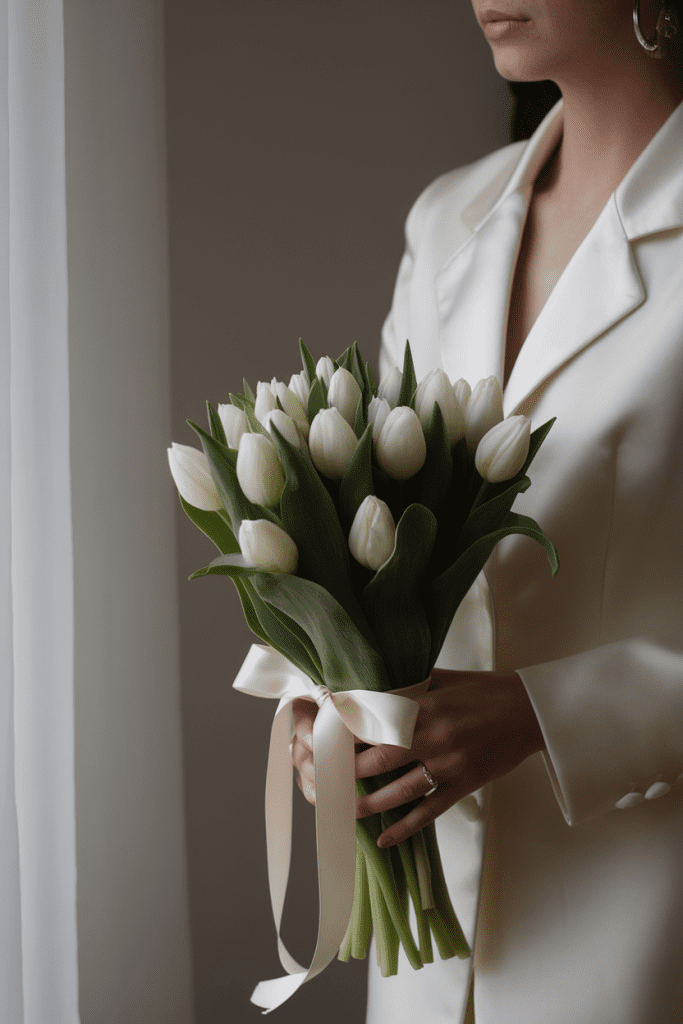 A simple bunch of white tulips feels crisp, chic, and effortlessly modern. Perfect for brides who want quiet elegance.