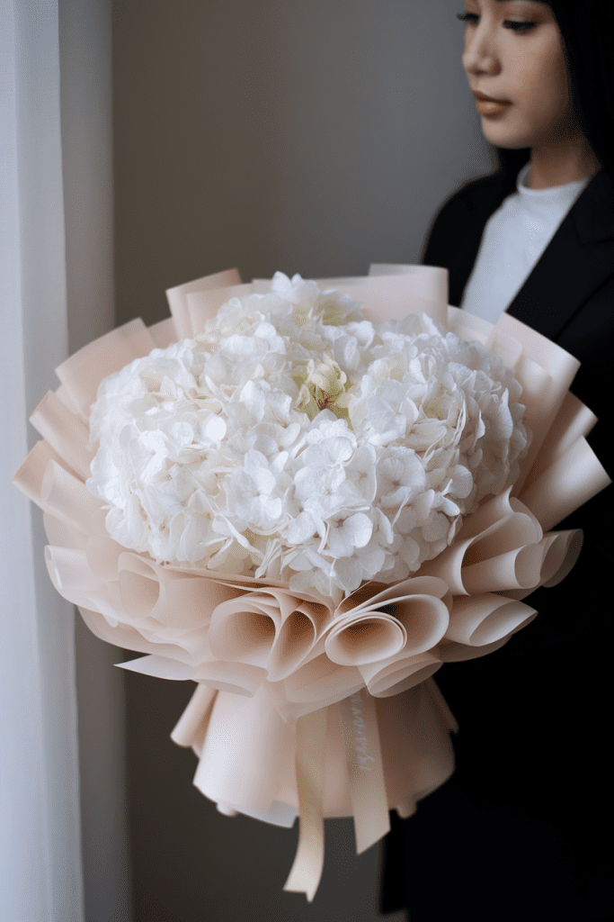 Full, fluffy, and high-impact—white hydrangeas look like clouds made chic. Add a silk ribbon and you’re golden.