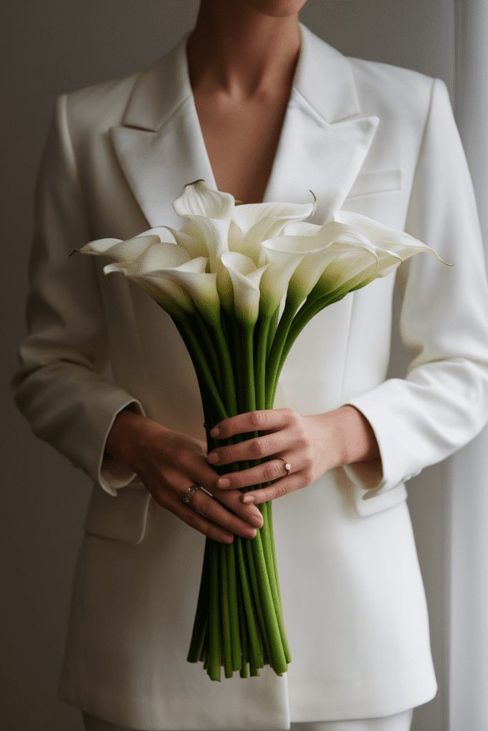 Sometimes less really is more. A clutch of long-stemmed white calla lilies feels sculptural and modern, like an art piece you can carry.