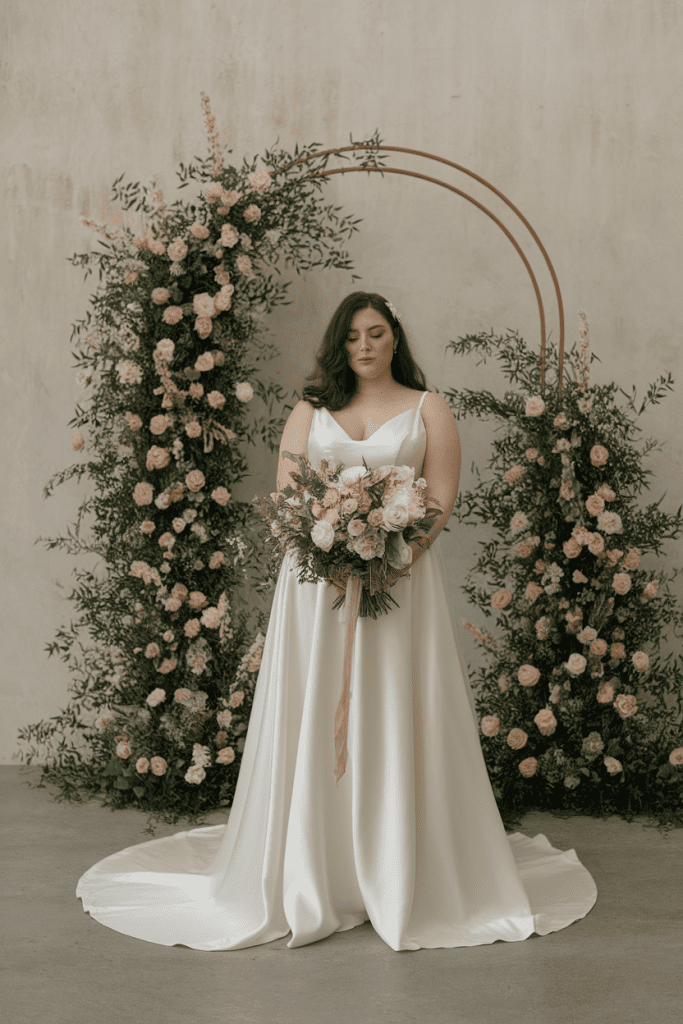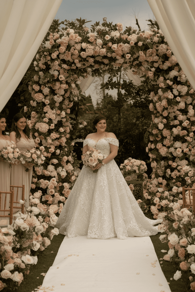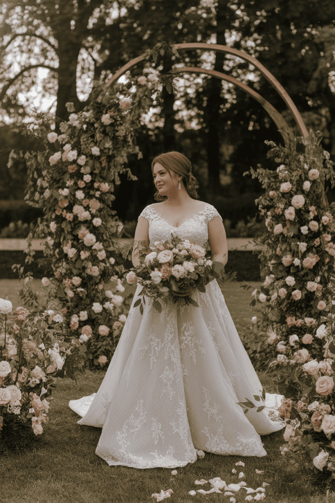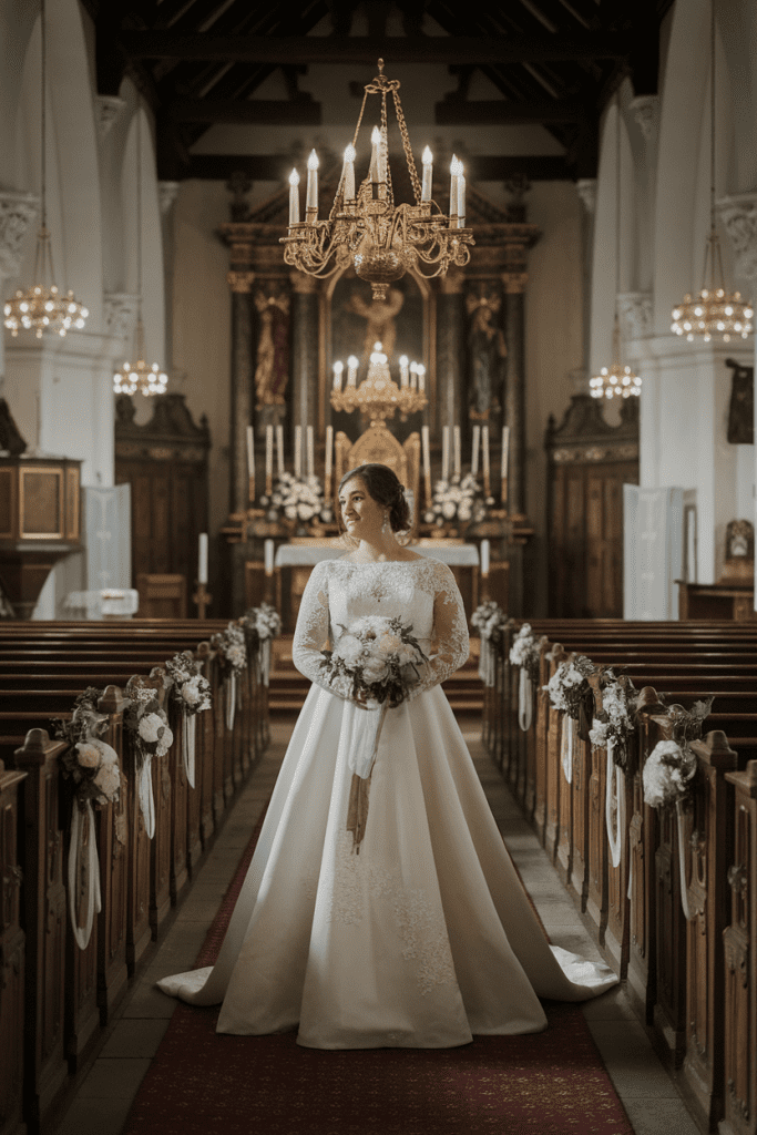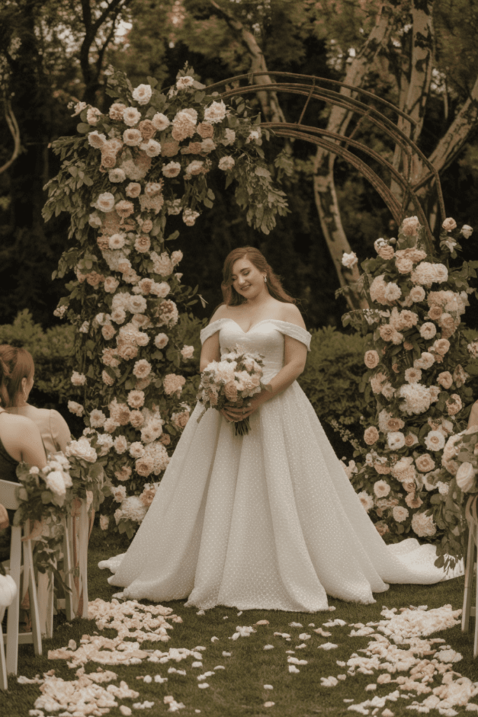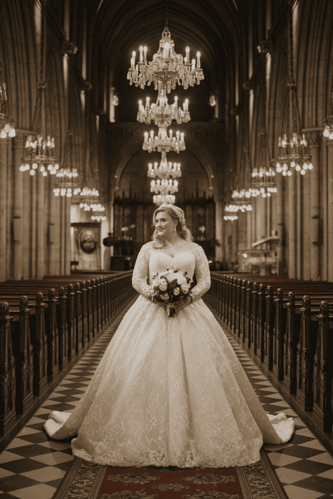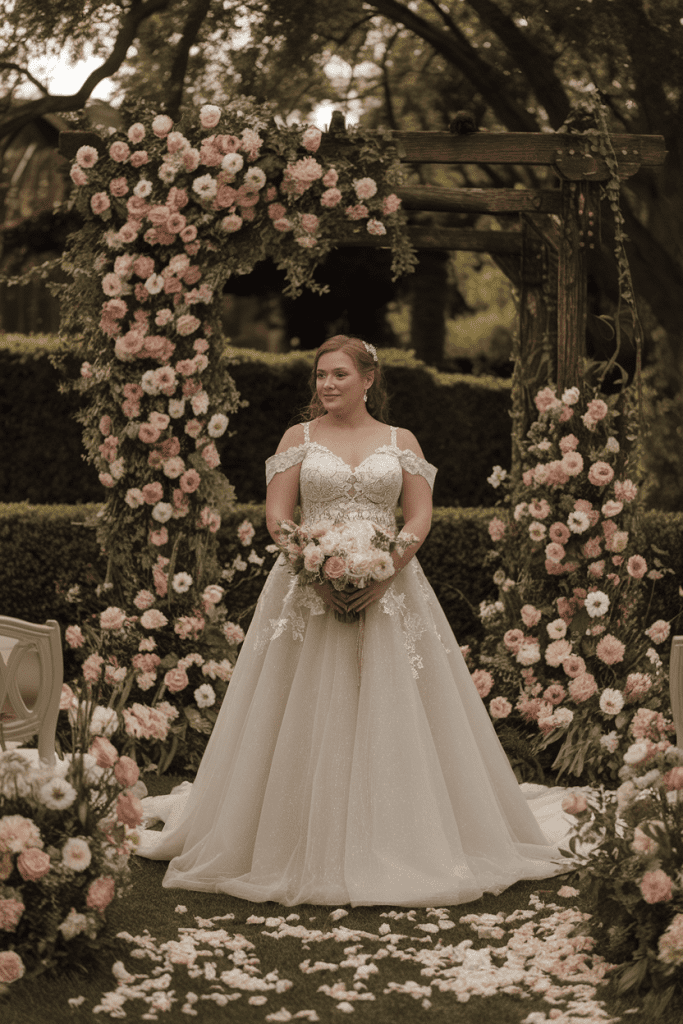The A-line gown is a forever favorite for brides of every size. Its fitted bodice and gently flared skirt create balance, elegance, and ease of movement. Plus size brides especially love how it flatters without feeling restrictive. This style works in nearly any setting, from a grand cathedral to a garden ceremony. Its simplicity makes it easy to accessorize with veils, jewelry, or even bold shoes. Affordable versions look as graceful as designer gowns. Brides describe the look as elegant, versatile, and always appropriate. It is truly a design that never loses relevance.
