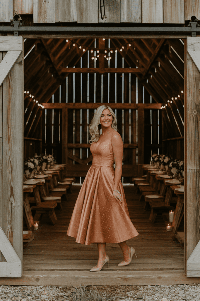 Fall weddings are the Super Bowl of guest fashion. Golden-hour lighting, crunchy leaves, maybe even a hay bale or two — autumn ceremonies set the stage for looks that are equal parts chic and cozy. But let’s be real: the weather is unpredictable, the ground is sometimes muddy, and you need a dress that balances practicality with wow-factor.