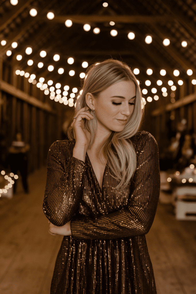 Sequins aren’t just for New Year’s. Bronze tones make them rustic-chic.