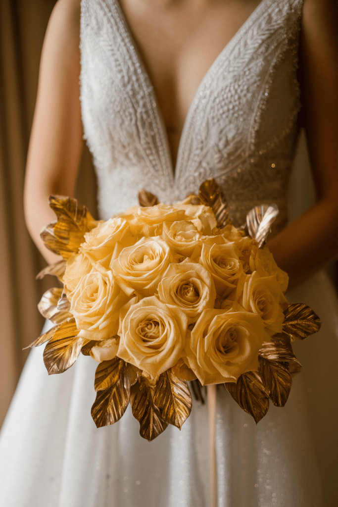 Nothing screams glam like yellow flowers paired with metallic gold leaves or accents.