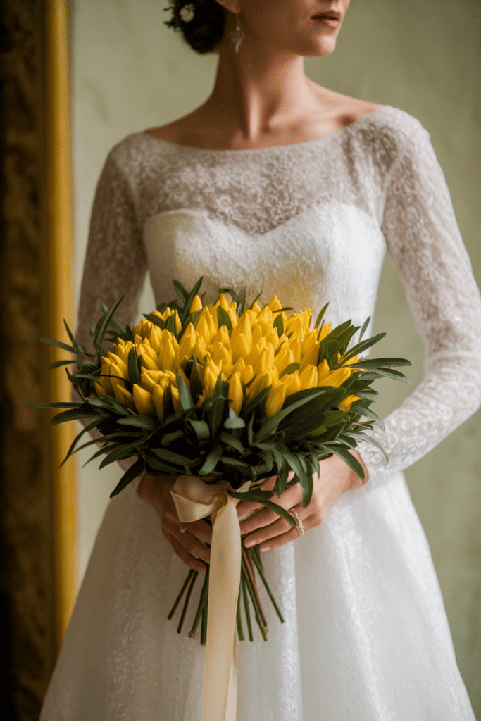 Yellow bouquets aren’t just flowers—they’re a mood. From rustic sunflower bundles to modern calla lily clutches, these 22 elegant designs prove that yellow is the star of 2025 wedding trends. They’re versatile, stylish, and most importantly, joyful.
