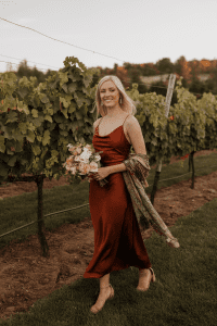 Think burnt orange roses, maroon dahlias, and wheat stalks. It’s cozy, chic, and totally fall wedding goals.