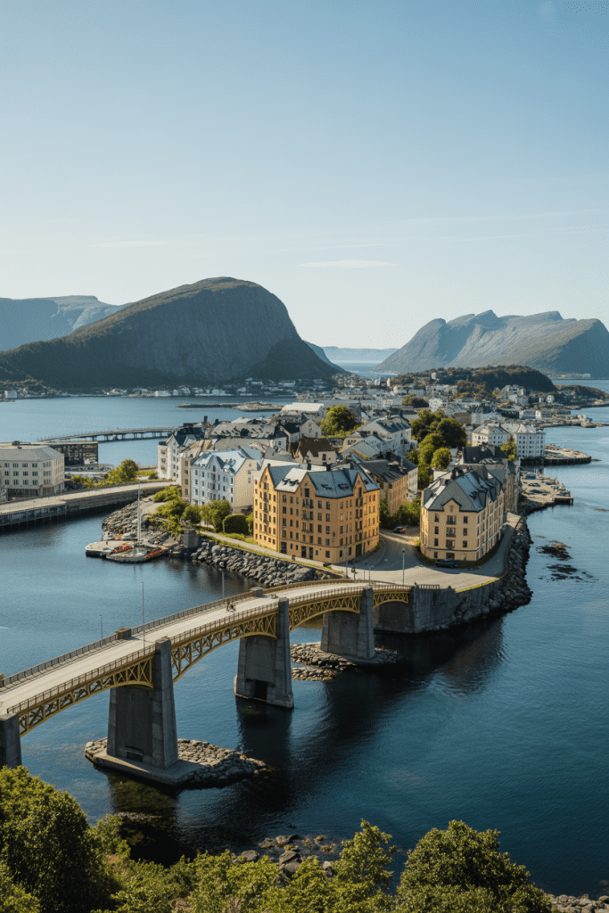 Ålesund’s Jugendstil architecture, perched on a panoramic fjord, makes it a unique elopement setting blending urban charm with natural beauty. Couples can wed on viewpoints overlooking the fjords or on historic bridges framed by ocean and mountain vistas.