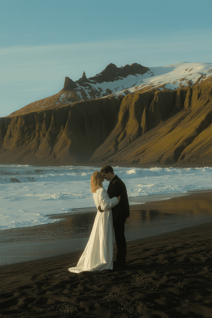 Elopement planners and photographers based in Reykjavík organize customized packages, making logistics simple despite the wild surroundings.