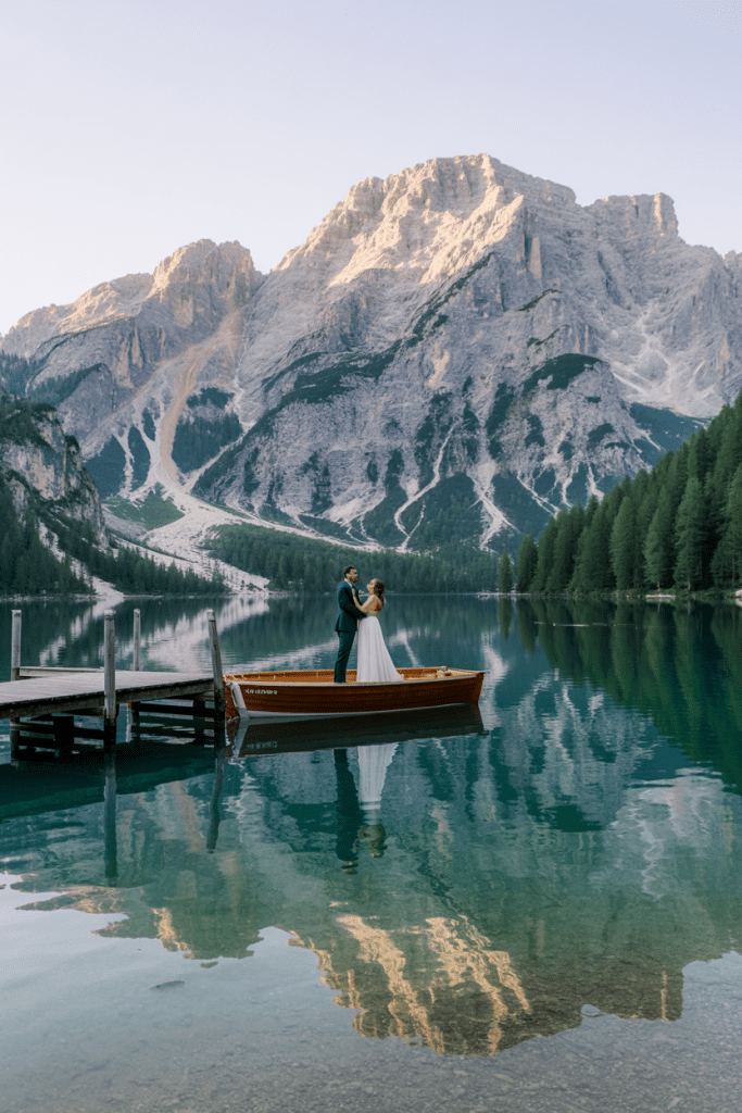 Elopement packages in this region often include lakeside photography sessions and adventure hikes for newlyweds. Lago di Braies’ secluded natural beauty guarantees cinematic photos and tranquil intimacy.