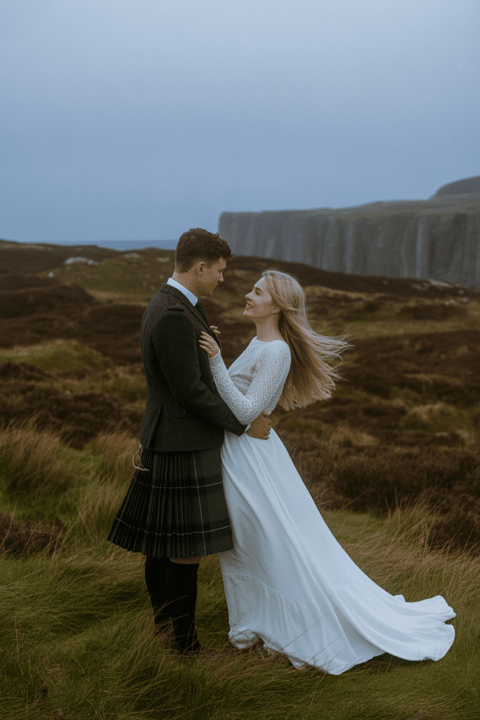 Remote and windswept, the Isle of Skye offers extraordinary backdrops for couples dreaming of a rugged, natural elopement. Its misty highlands, waterfalls, and cliffs provide dramatic contrasts between wild landscapes and intimate romance. The Fairy Glen, Quiraing, and Neist Point lighthouse are iconic ceremony spots for couples seeking elemental beauty.
