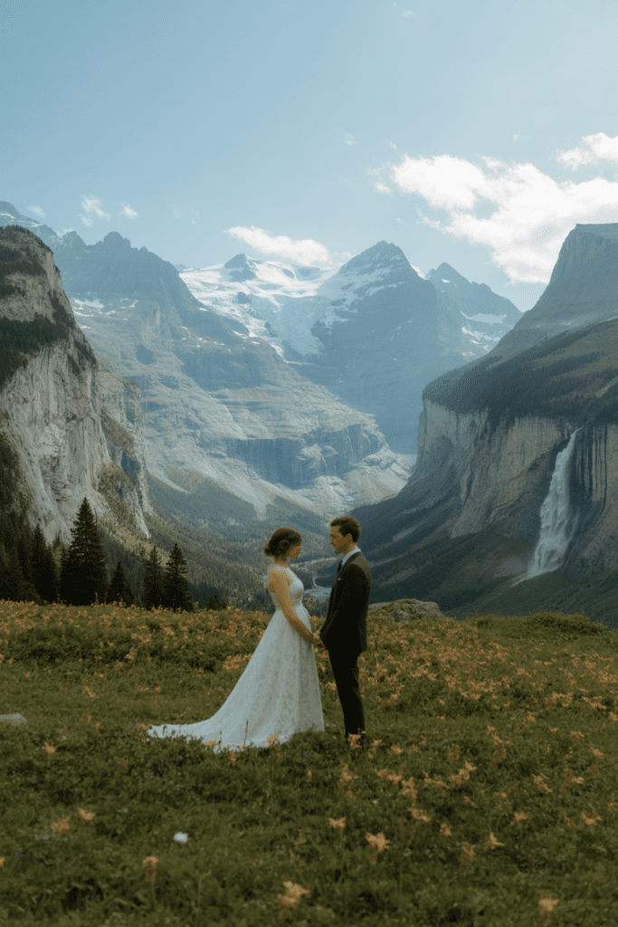 Hidden among the majestic Swiss Alps, Lauterbrunnen Valley is a wonderland of waterfalls and alpine meadows, often called “the Valley of 72 Waterfalls.” Couples can exchange vows beneath plunging cascades like Staubbach Falls or amidst wildflower-filled meadows with snow-capped peaks as their witness.