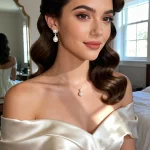 Effortless and editorial, this mid-height pony with a crisp center part feels fresh and refined. The silk bow adds a couture vibe without being overly precious. It’s minimalist, but not boring—more “quiet luxury bride” than prom throwback.