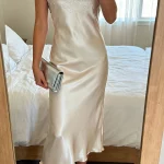 - Balance the slinkiness with a structured bag and refined jewelry.