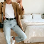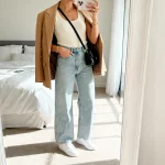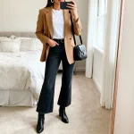This is the outfit that makes you look like you have your life together—even if you don’t have coffee yet. A sharp structured blazer smooths out the casual vibe of cargo jeans, and the contrast feels modern and confident. It’s polished without trying too hard.