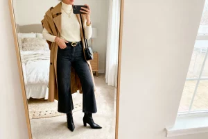 - If you’re petite, opt for a cropped knit to avoid overwhelming your frame.