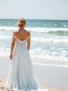 Styling tips include opting for a dress with sleeves or a high neckline if your wedding is in cooler weather. For sunnier days, a strapless or off-the-shoulder gown can be refreshing. Don’t forget to accessorize with a light shawl or bolero in case it gets chilly.