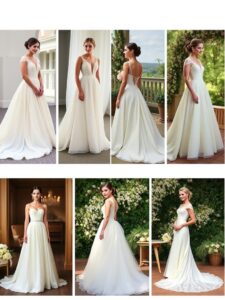 Column wedding dresses are a stunning choice for modern brides. These dresses feature a straight silhouette that flows gracefully down the body, highlighting the wearer’s figure. In the image, we see several brides showcasing this chic wedding fashion in various settings, adding to the elegance of their special day.