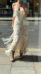 Channel Gatsby glam with a mermaid that nods to the 1920s—think geometric beading, soft feathers, and slinky lines. It’s playful, luxe, and every step feels like a champagne moment.
