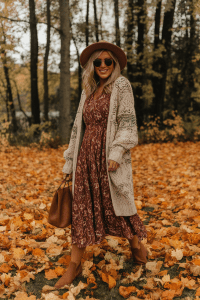 Yes, florals work in fall — you just need the right palette. Go for a dark floral maxi with earthy tones like plum, mustard, or navy. Add a denim jacket and suddenly the whole look feels perfectly rustic-chic.