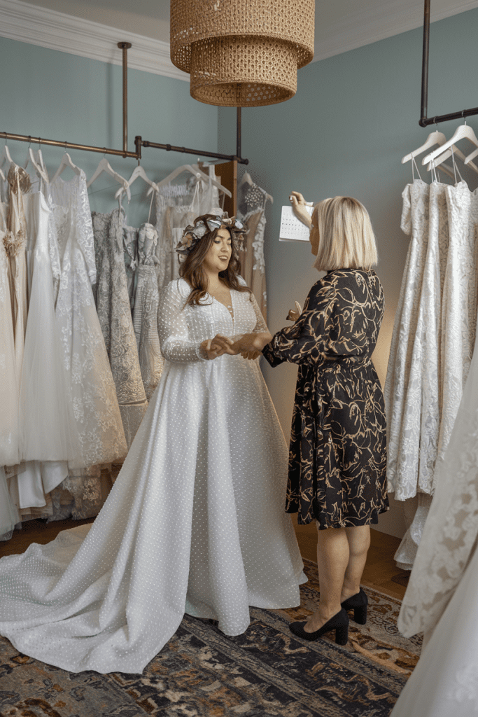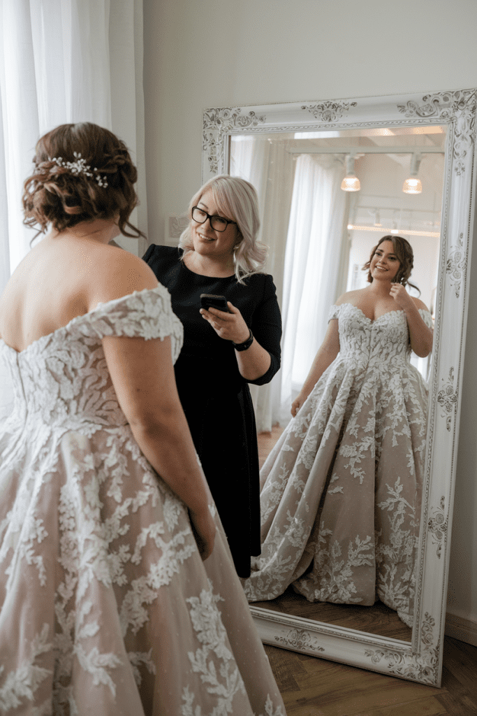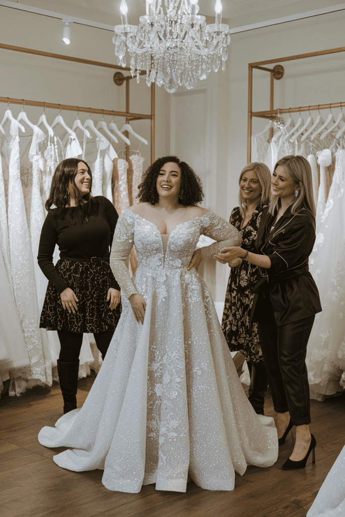 The bridal appointment is often seen as a shared experience, with brides surrounded by family and friends. While support can be wonderful, too many opinions can quickly overwhelm. For plus size brides in particular, unhelpful comments about body shape or style choices can cut deep and lead to confusion. The result is that the bride loses sight of her own feelings and instead tries to satisfy everyone else. Limiting the entourage to one or two trusted people often creates a calmer, more supportive environment. These companions should encourage and uplift rather than criticize. Ultimately, the gown must reflect the bride’s own style and vision, not the preferences of others. Too many voices can drown out the most important one—the bride’s own. Choosing a wedding dress is an intensely personal decision, and protecting that space ensures the experience is joyful rather than stressful.