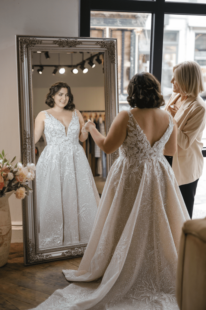 Time is a critical factor in finding the right gown. Many plus size brides assume they can shop closer to the wedding date, only to discover that dresses take months to order and alter. Salons often carry fewer extended-size samples, which can add extra time to the process. Waiting too long can also mean paying rush fees or settling for limited options. Starting early ensures access to the widest variety of gowns and reduces stress as the wedding day approaches. Ideally, brides should begin shopping at least six to nine months in advance. This timeline allows for ordering, multiple fittings, and thoughtful decision-making. Rushing the process creates unnecessary pressure and can leave brides with regrets. Taking time allows the experience to feel enjoyable rather than frantic.
