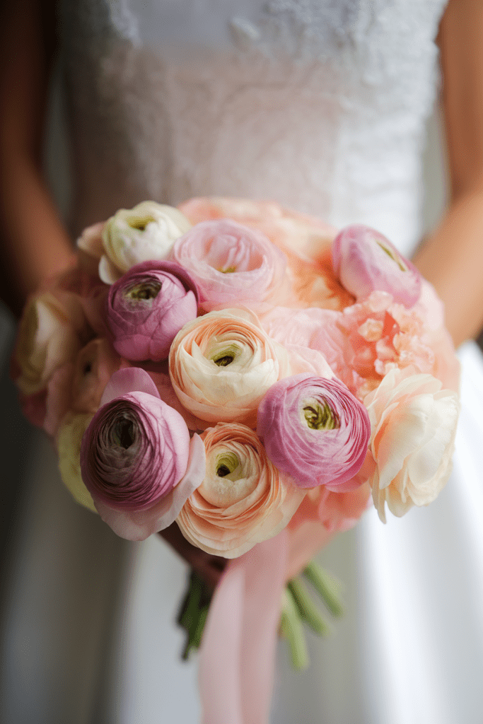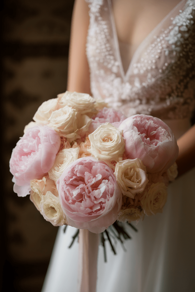 Tip: Pair blush peonies with ivory roses or ranunculus to soften the palette.