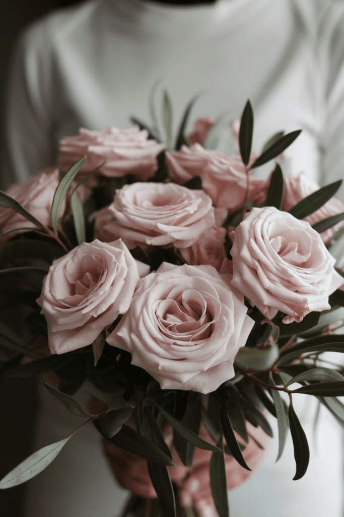 Garden roses look fuller and fluffier than traditional roses, and they photograph like a dream. Add whimsical greenery like olive branches or seeded eucalyptus for that organic, “oh I just gathered these” feel.
