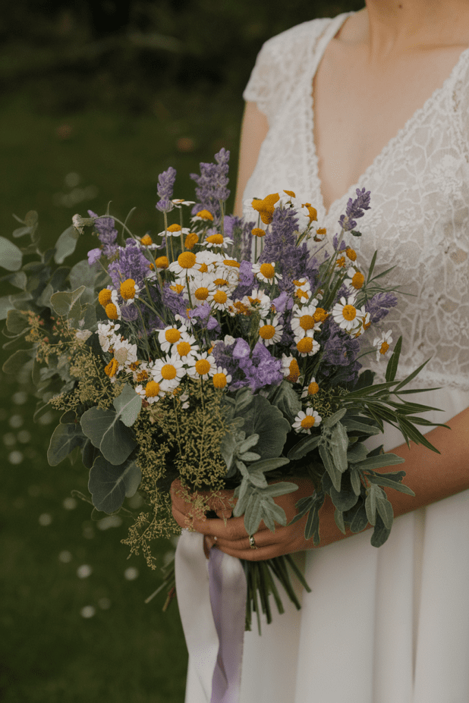 Wildflower bouquets are having a moment, but the trick is keeping them elegant, not messy. Think lavender, chamomile, and daisies paired with structured greenery. It’s like cottagecore, but polished.