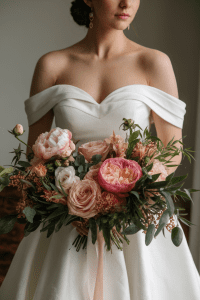 Tip: Pair blush peonies with ivory roses or ranunculus to soften the palette.