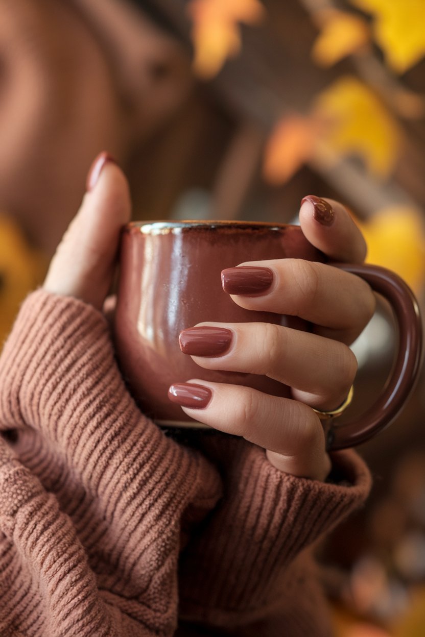 Imagine pink with a cozy cinnamon twist. With warm, terracotta undertones, this shade brings just the right amount of autumn depth while still keeping its soft, feminine charm. It’s a unique and stylish pick for the season.