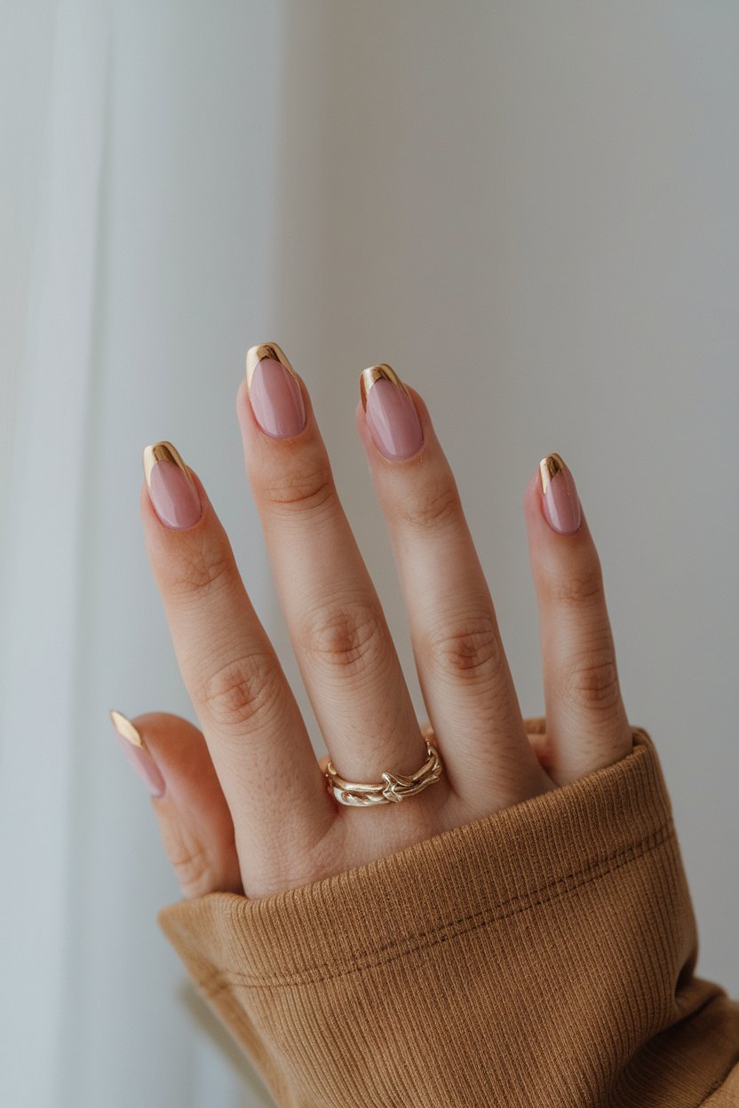 A sheer pink base paired with gold-dipped tips is the perfect blend of elegance and trend. This modern twist on the classic French manicure adds a warm, fall-ready glow that feels both timeless and fresh.