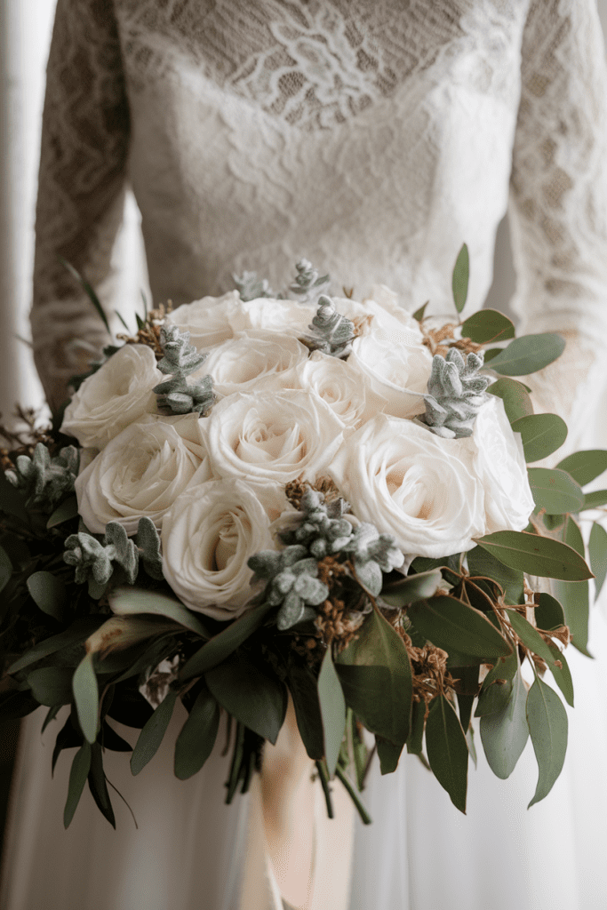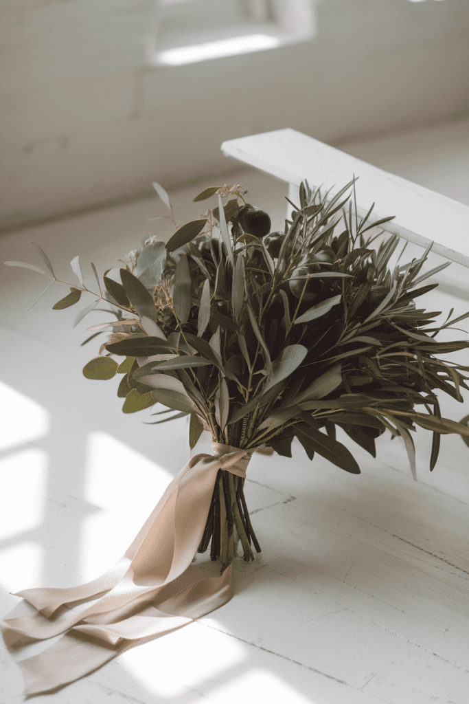 Sometimes less is more. A bouquet made entirely of greenery (like eucalyptus or olive branches) feels chic and unexpected.