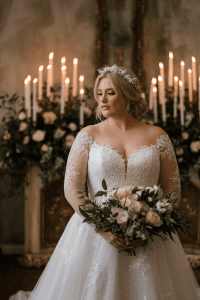 Lace has always carried an air of romance and tradition in bridal fashion. For plus size brides, lace can be transformative, adding texture and interest while flattering the figure. Full lace gowns create a vintage-inspired effect, while lace bodices paired with satin or chiffon skirts balance elegance with comfort. Brides love how lace sleeves provide coverage without heaviness, especially when sheer designs are used. Lace can be tailored to many aesthetics—from bohemian florals to regal, intricate patterns. However, lace dresses often require lining to avoid transparency, which can affect breathability. High-quality lace moves with the body and feels soft against the skin, while cheaper lace can feel scratchy. Brides often choose lace for its timelessness; it never feels out of fashion. Combined with the right silhouette, lace gowns allow brides to feel romantic, feminine, and confident.