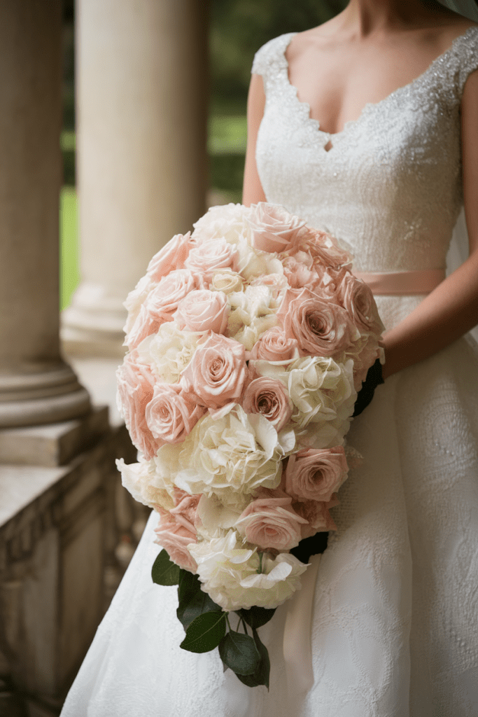 Pro tip: Keep the palette classic—blush, ivory, or pale peach.