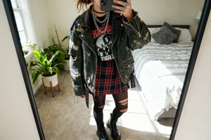 This is that every-day-but-better outfit: relaxed denim, a buttery leather jacket, and your brown Docs grounding the whole thing. It nails the laid-back grunge vibe without tipping into costume. Wear it to brunch, gallery walks, or that casual date where you still want to look put together.