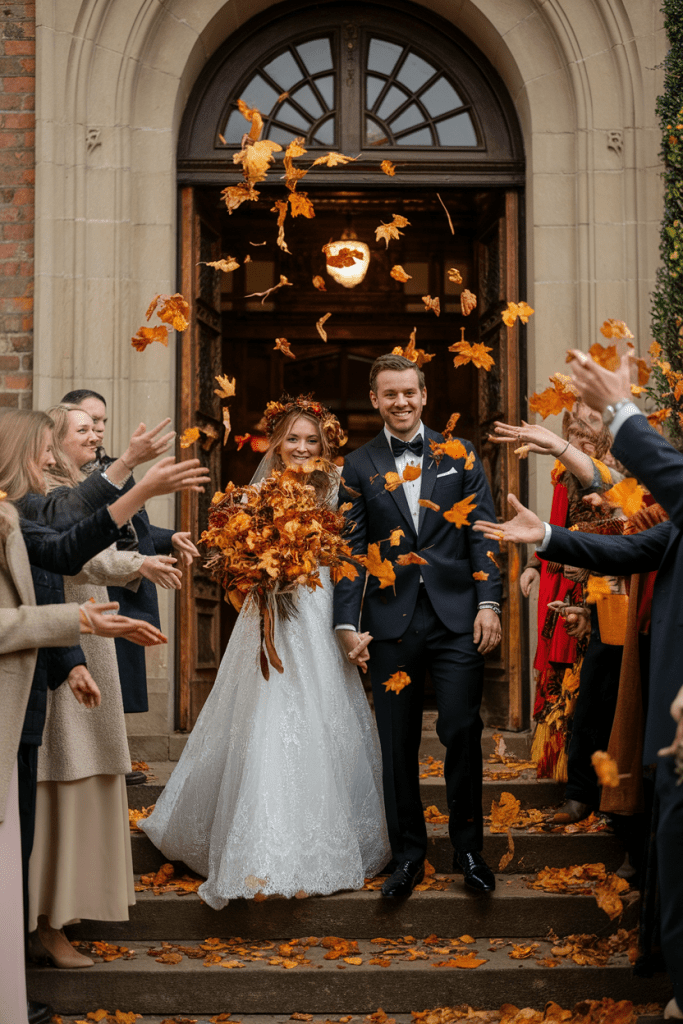 Rice tosses are outdated, confetti is messy, but pumpkin-inspired alternatives? Genius. Hand guests little sachets of dried pumpkin seeds or autumn leaves to toss as you exit. Biodegradable, cute, and on-theme.