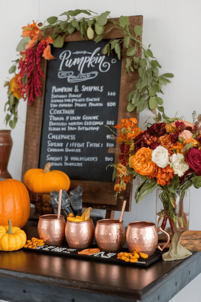 Styling tip: Put the signature cocktail menu on a chalkboard with autumn illustrations. It’s festive but elevated.