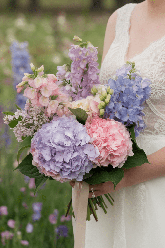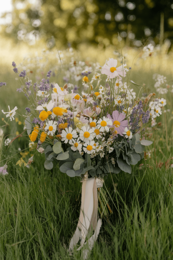 Sometimes, it’s not just the flowers—it’s how you style them. Add long silk or chiffon ribbons in pastel shades to a loose bouquet for movement and drama.