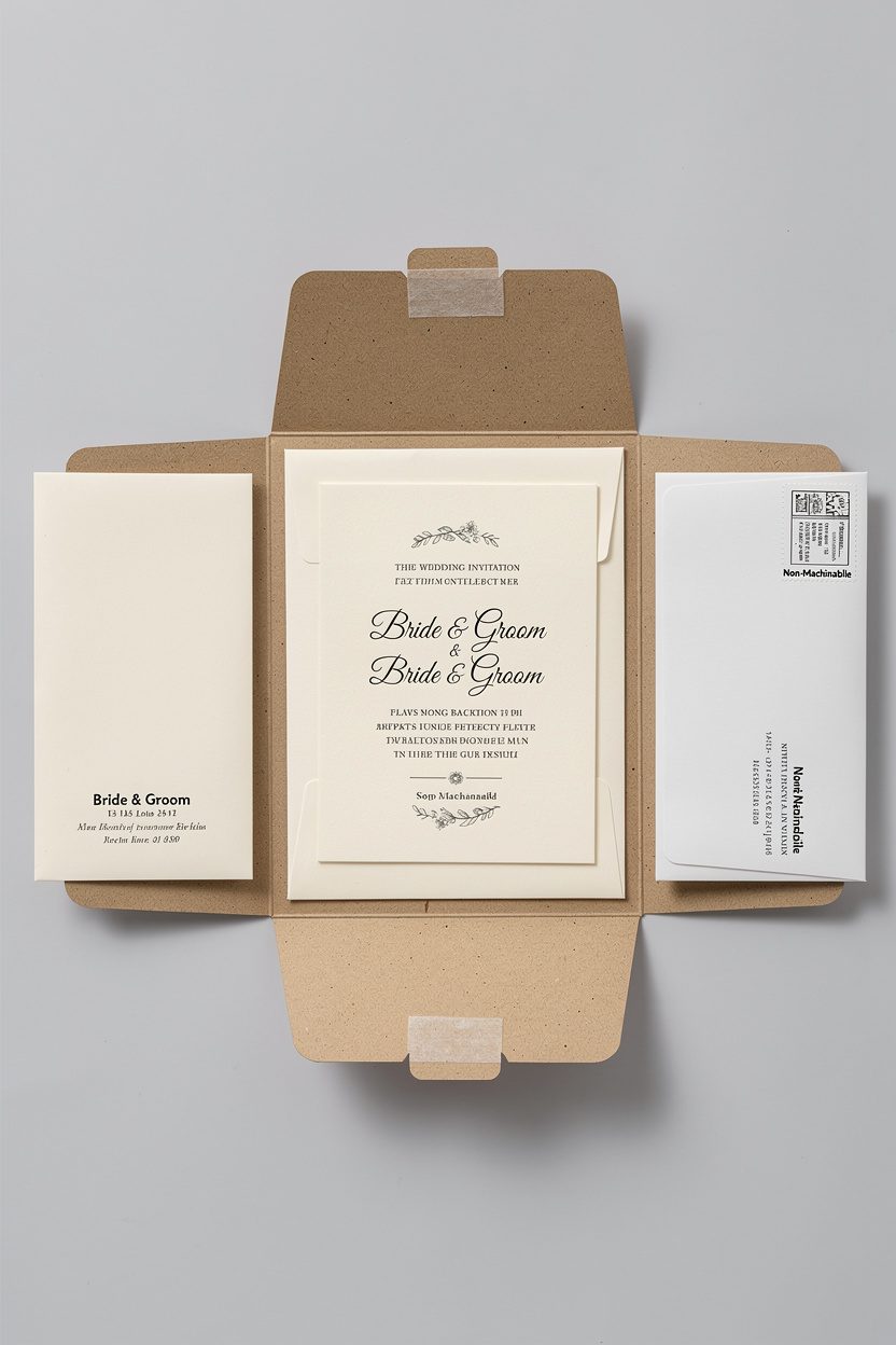 You don’t want your invitations arriving bent or costing $8 each to mail. Plan for reality. Keep it shippable: