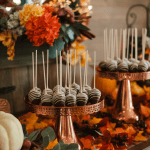 Nothing says party like a ceiling moment. Hang circular or cloud like installations of seasonal greenery with a few branches of maple or beech for that autumn tone. Sprinkle in micro string lights for twinkle. The effect feels expensive, even when the greens are simple.