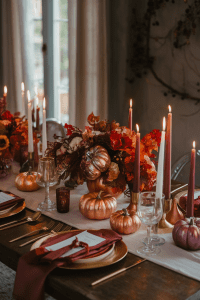 A greenery table runner wins every time in fall. Keep the base lush and low, then tuck in seasonal fruit like figs, pears, or tiny crab apples for a subtle nod to harvest. Add taper candles in mixed heights. The colors pop without feeling loud.