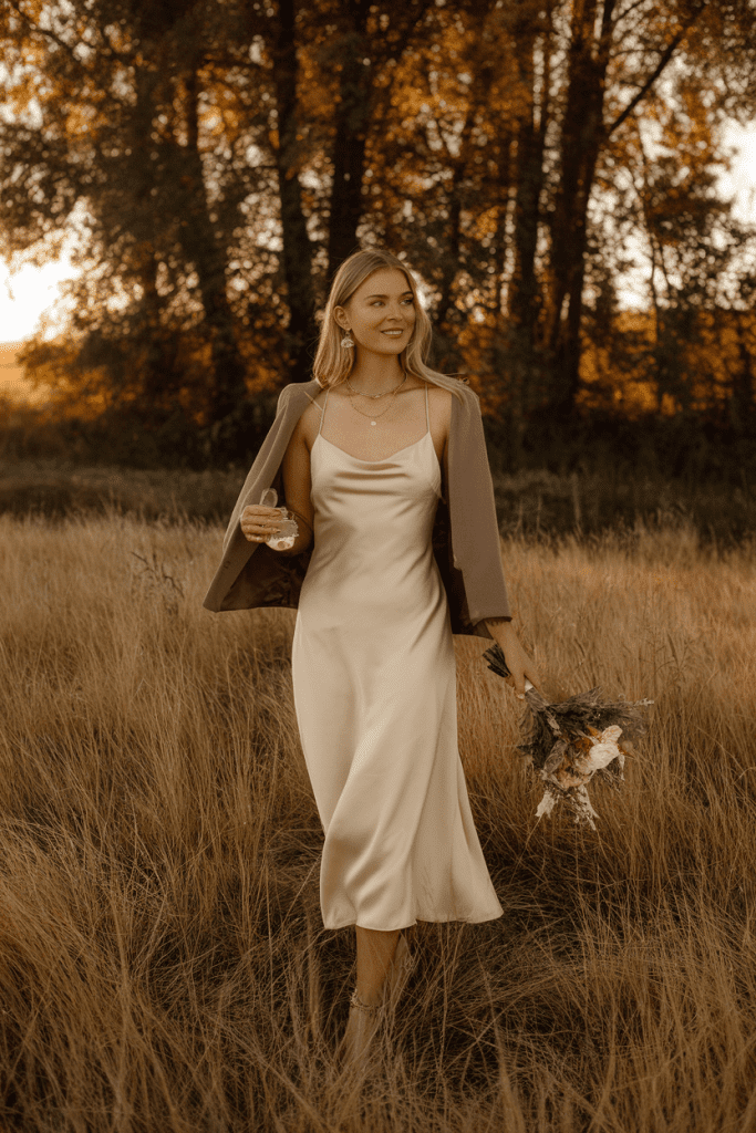 Fall weddings are iconic. The leaves are dramatic, the wine is flowing, and the vibes are all about cozy elegance. But here’s the real secret to looking amazing without freezing your stylish self off: it’s not just the cut of the dress — it’s the fabric.