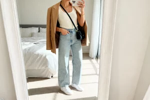 - Let the jeans graze the top of your boot—no stacking. Aim for a slight break so the leg line stays long.