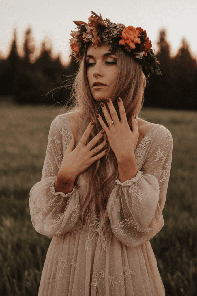 The 1970s brought a wave of experimentation across fashion and beauty, and bridal nails were no exception. Earthy tones like browns, oranges, and muted greens appeared alongside more daring colors. Brides who embraced bohemian aesthetics chose nails that reflected individuality rather than tradition. Nail length and shape varied widely, from natural short nails to longer, almond shapes. The decade emphasized freedom of choice, allowing brides to step away from strict conventions. Wedding nails became more reflective of personal style, whether understated or bold. This period marked the beginning of nails as a true extension of bridal personality.