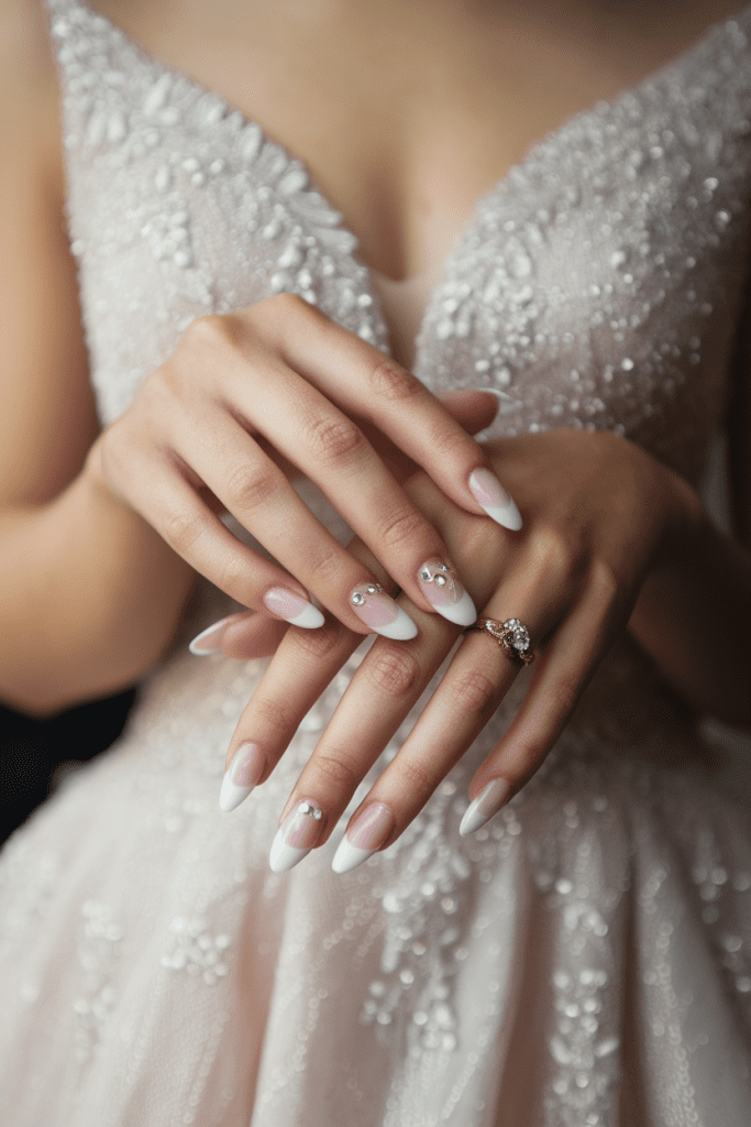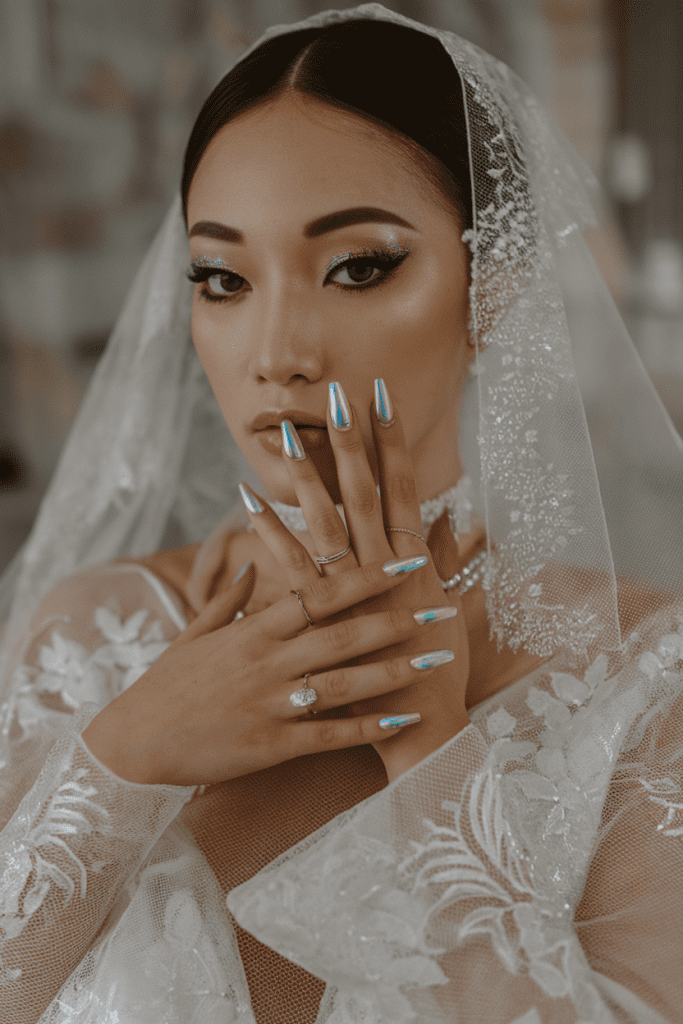 Today, bridal nails reflect the era’s emphasis on individuality and innovation. From minimalist nude chrome to bold neon statements, brides have endless choices to match their personal style. Sustainable polishes and at-home gel kits have also gained popularity, aligning with broader wellness and eco-conscious movements. Current trends highlight versatility: French ombre twists, holographic chrome, and soft pearl finishes coexist effortlessly. Brides now see nails as part of their storytelling, whether through subtle elegance or bold creativity. The modern bride is empowered to choose nails that reflect her personality, ensuring her manicure feels just as significant as her gown or jewelry.